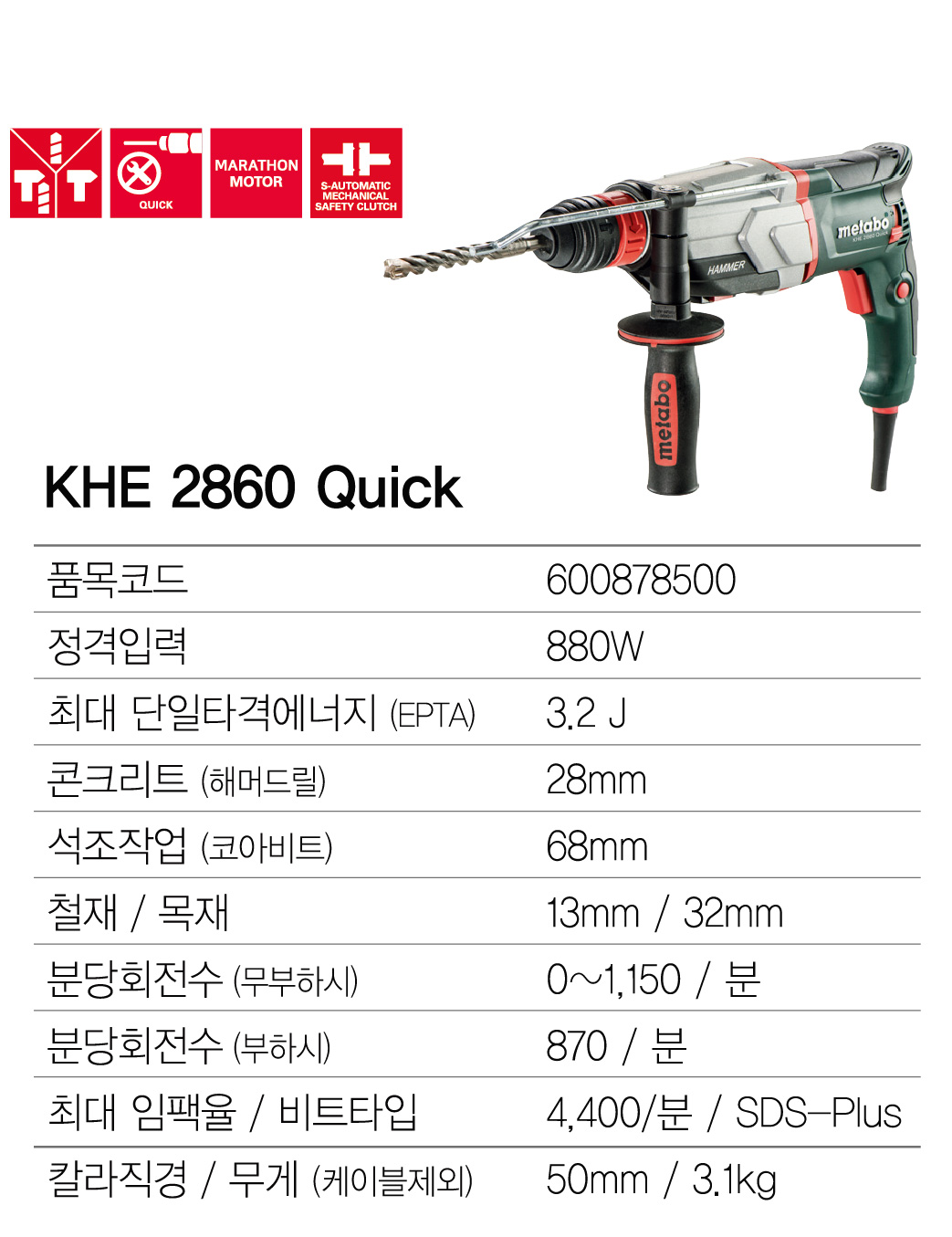 [메타보] KHE2860 Quick 드라이버 함마드릴