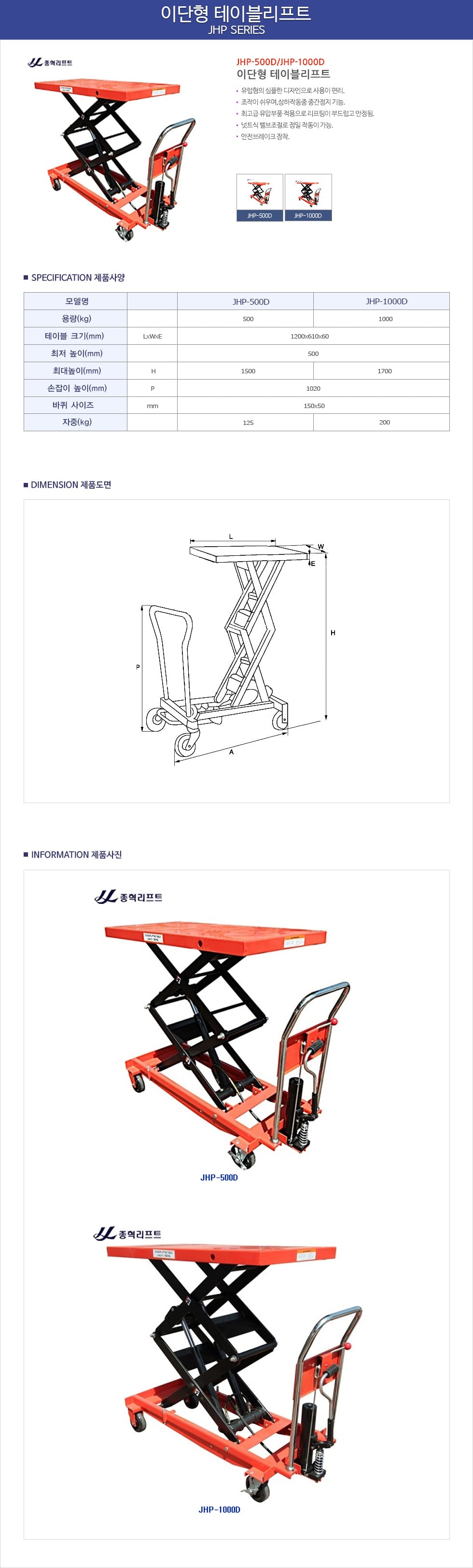 [종혁] 이단형 테이블리프트 JHP-1000D