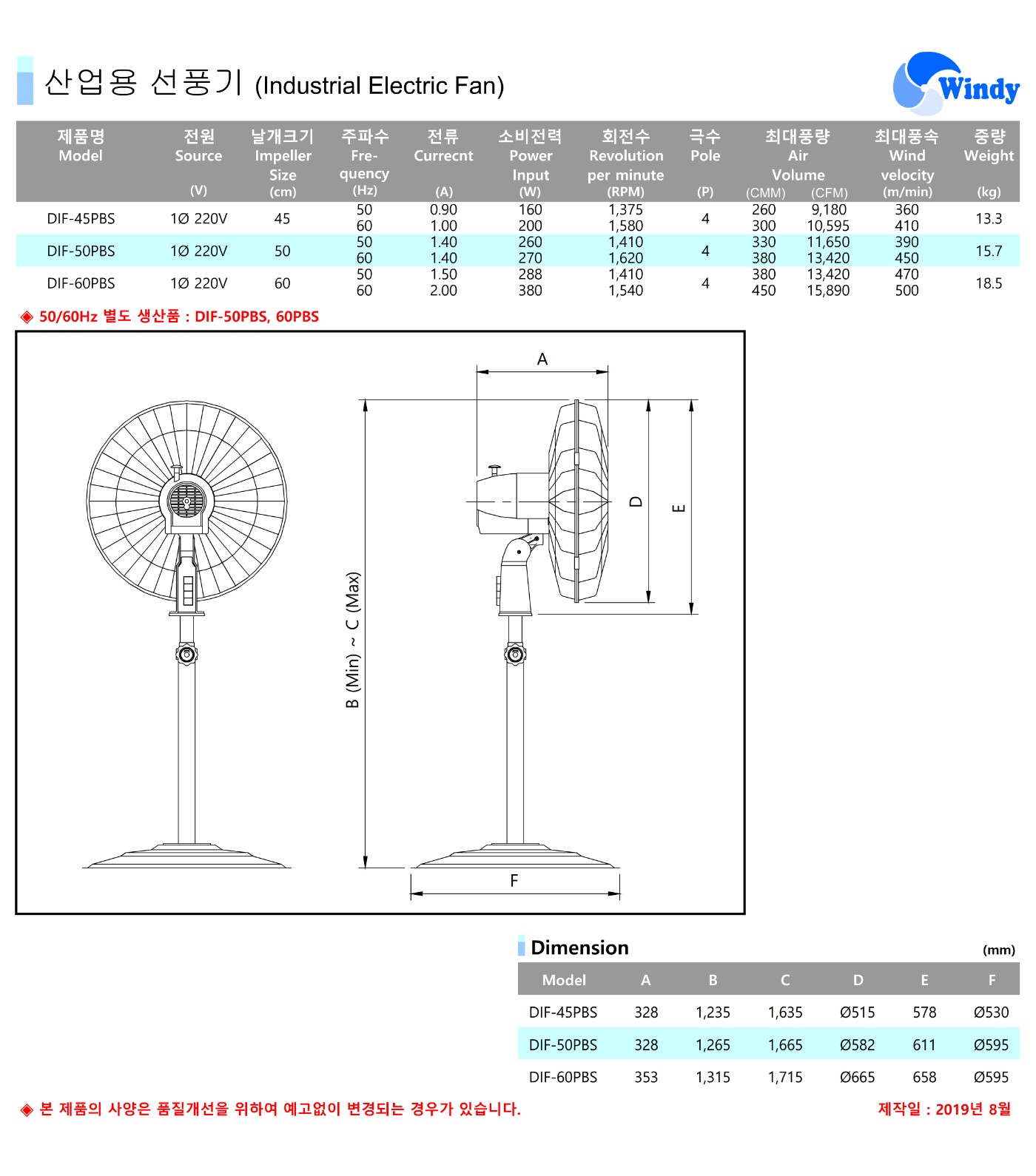 [동건공업] 산업용 스탠드형 선풍기 DIF-60PBS