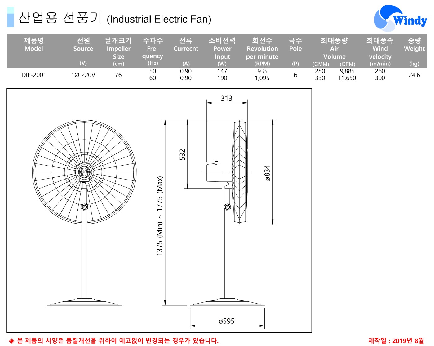 [동건공업] 산업용 스탠드형 선풍기 DIF-2001