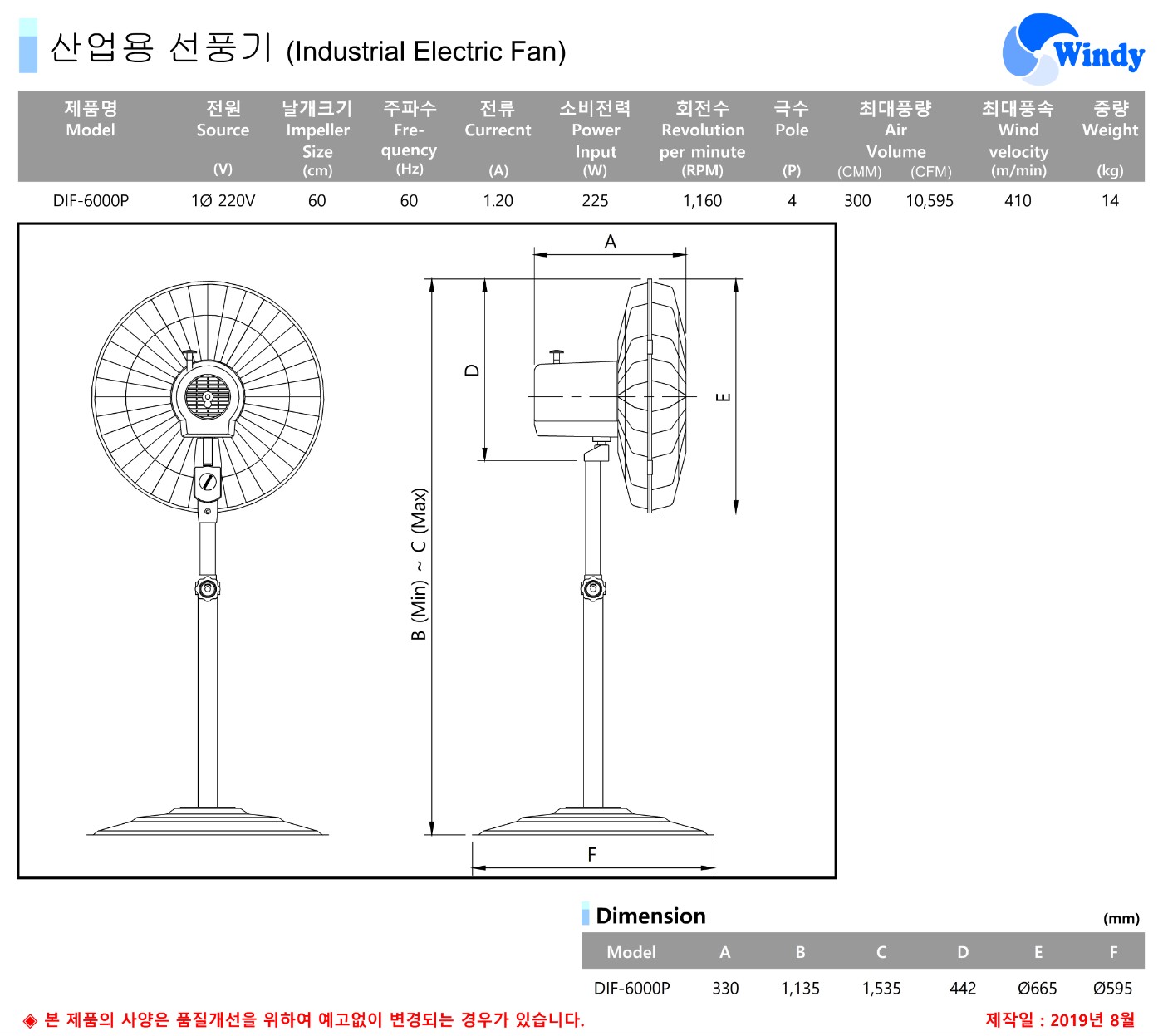 [동건공업] 산업용 스탠드형 선풍기 DIF-6000