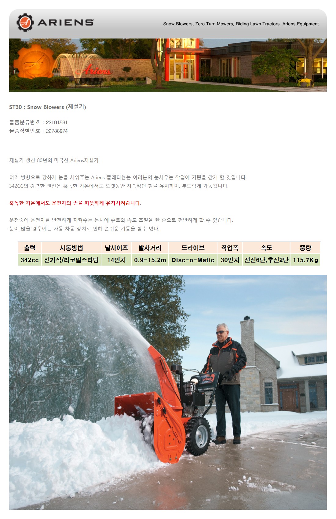 [에어리언] 제설기 ST30