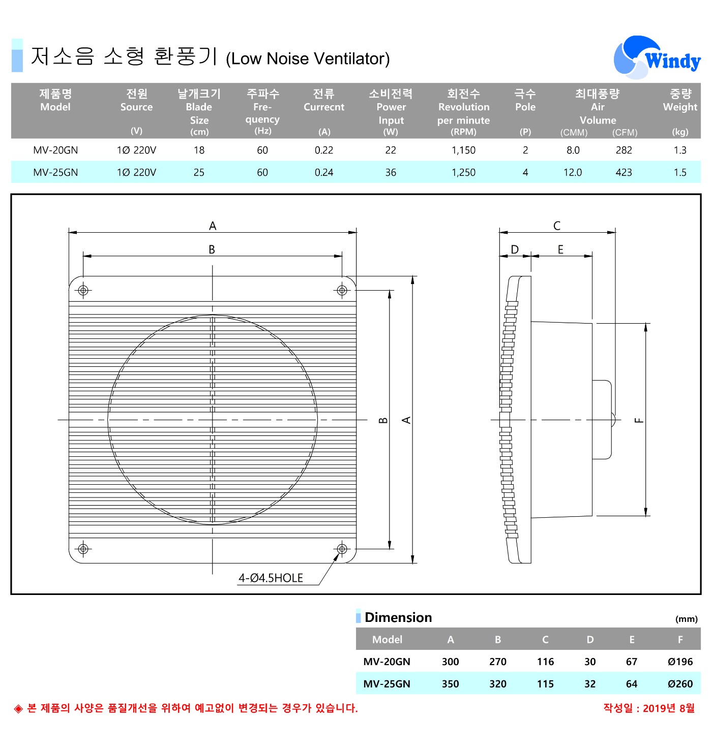[만승전기] 저소음 소형 환풍기 MV-20GN MV-25GN