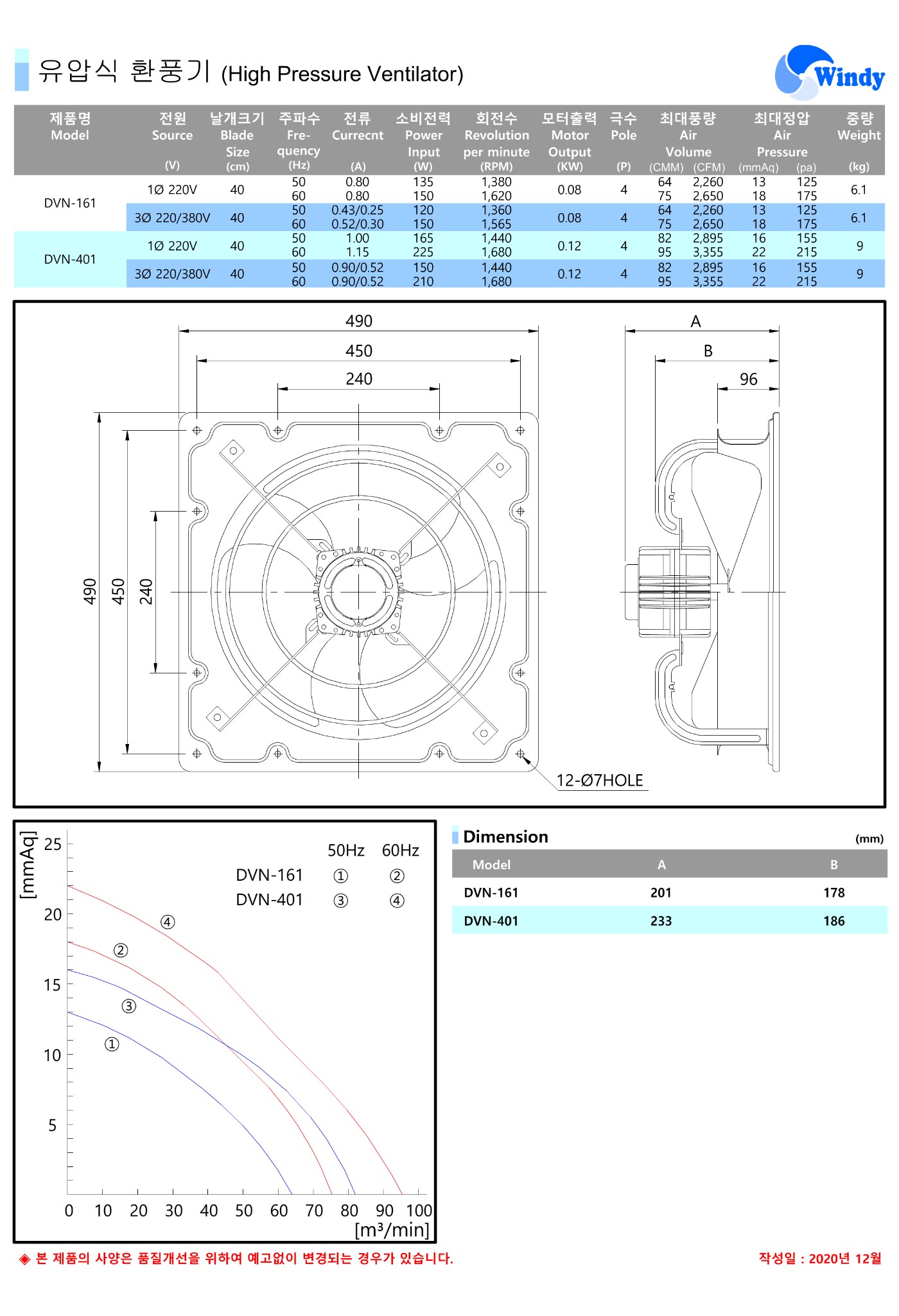 [동건공업] 유압식 환풍기 DVN-161 DVN-401