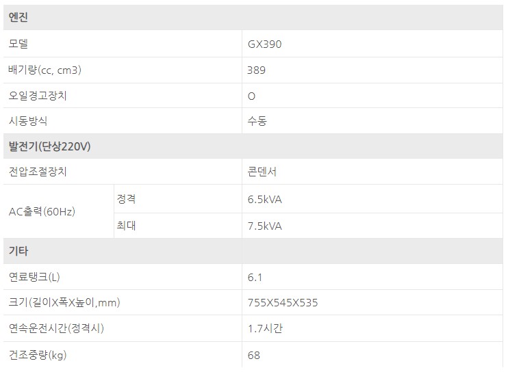 [제넥스] 가솔린 혼다엔진 발전기 SG7500SX