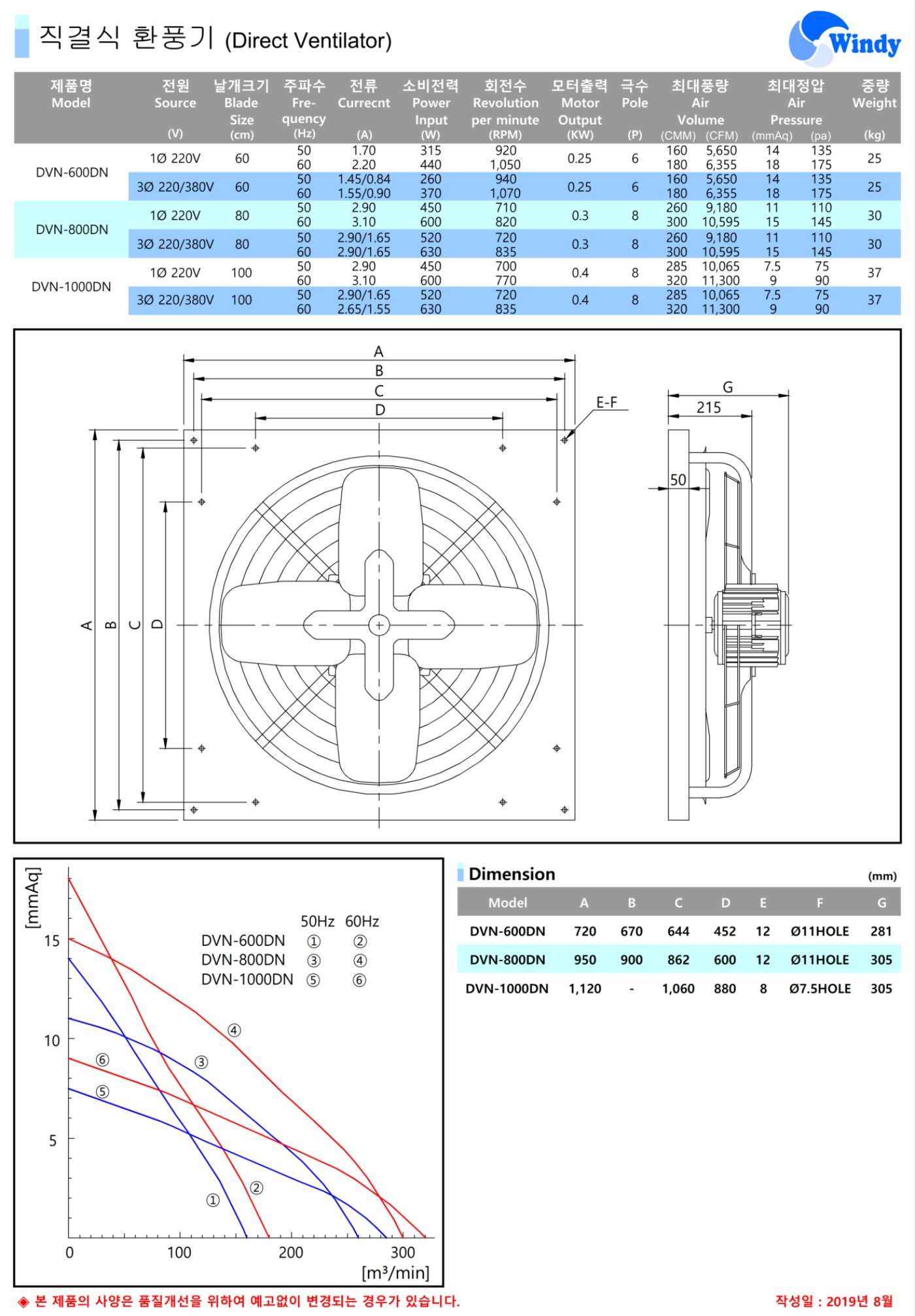 [만승전기] 농축산업용 환풍기 DVN-600DN DVN-800DN DVN-1000DN