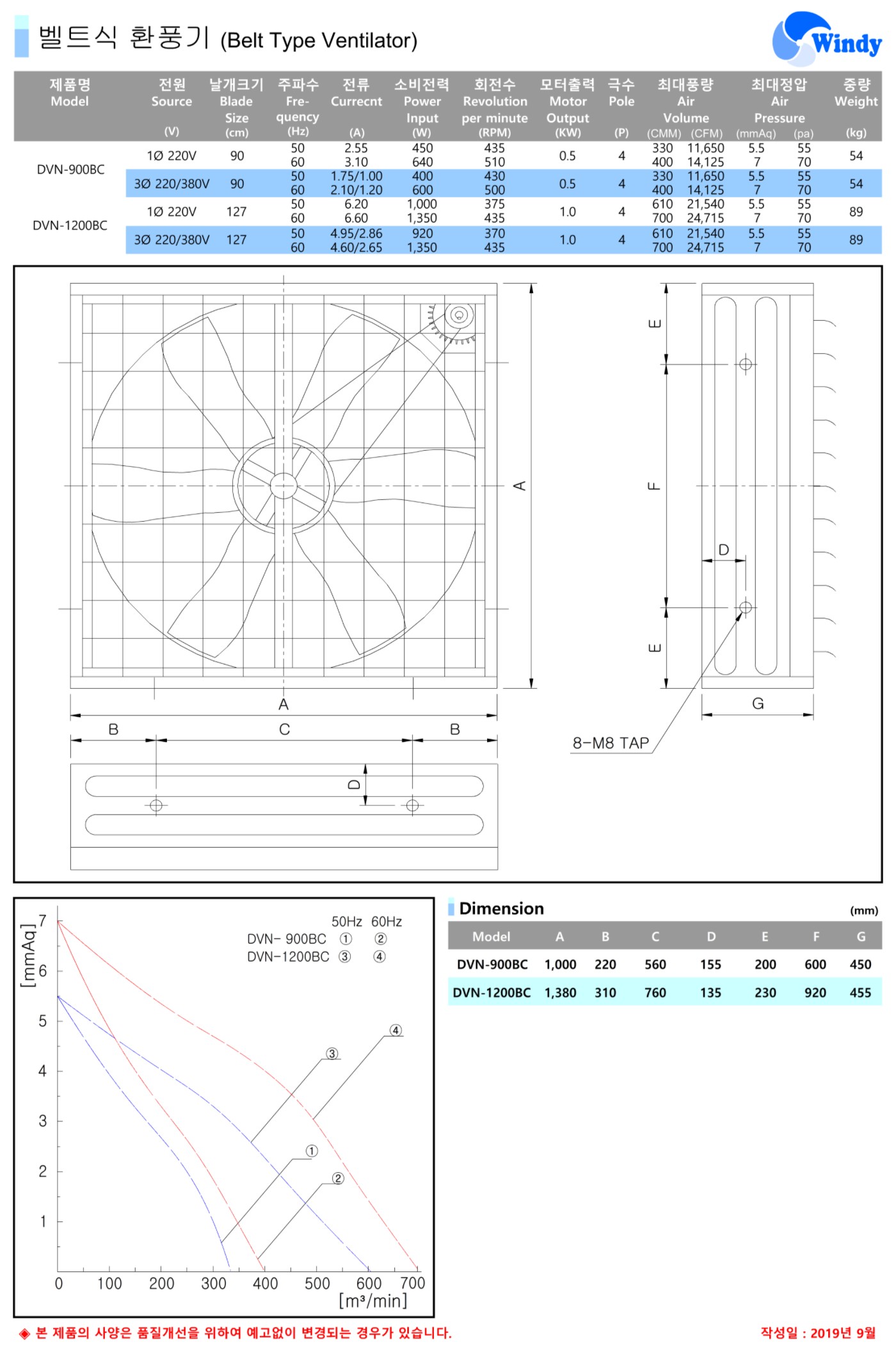 [동건공업] 벨트식 환풍기 DVN-900BC DVN-1200BC