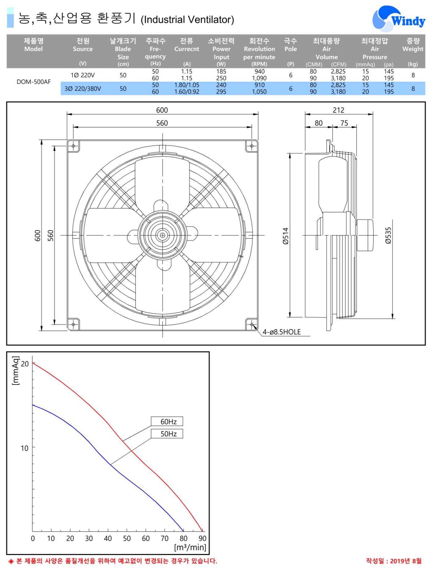 [동건공업] 농축산업용 환풍기 DOM-500AF