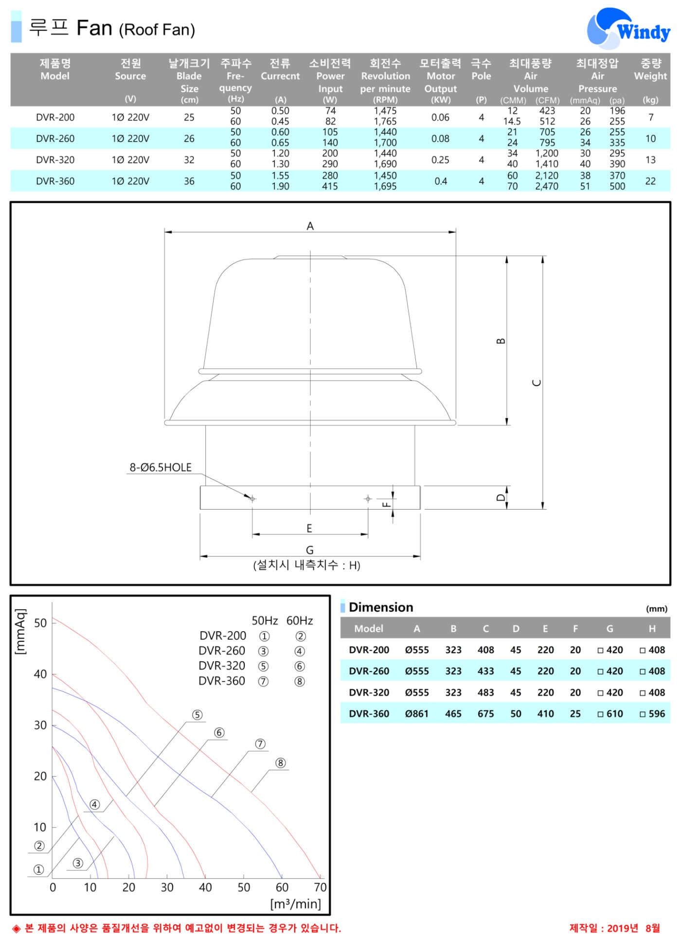 [동건공업] 배출형 루프휀 DVR-200 DVR-260 DVR-320 DVR-360