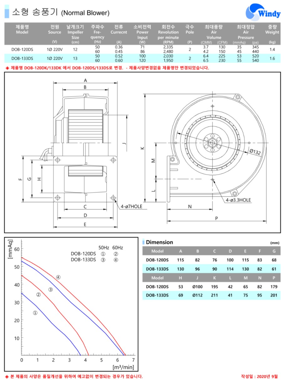 [동건공업] 소형 소풍기 DOB-120DS DOB-133DS