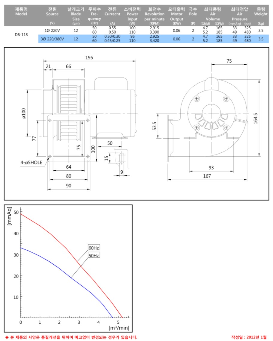 [만승전기] 소형 송풍기 DB-118