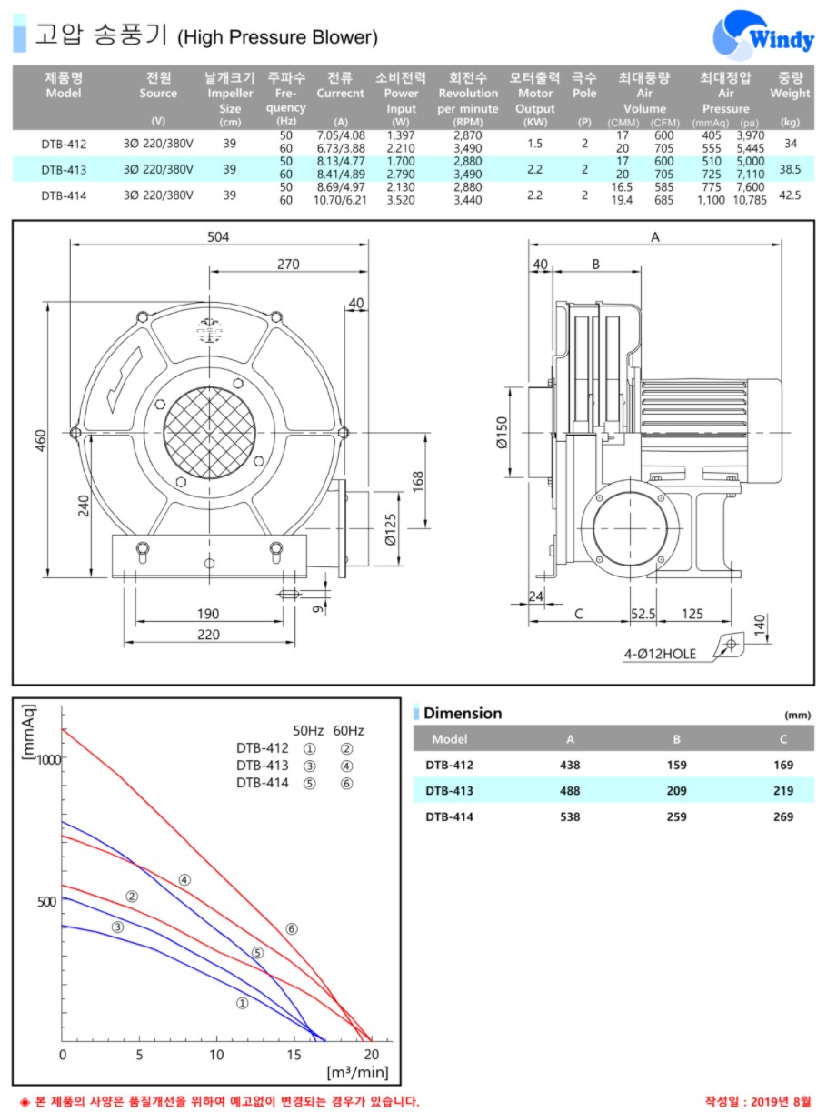 [만승전기] 고압 송풍기 DTB-412 DTB-413 DTB-414