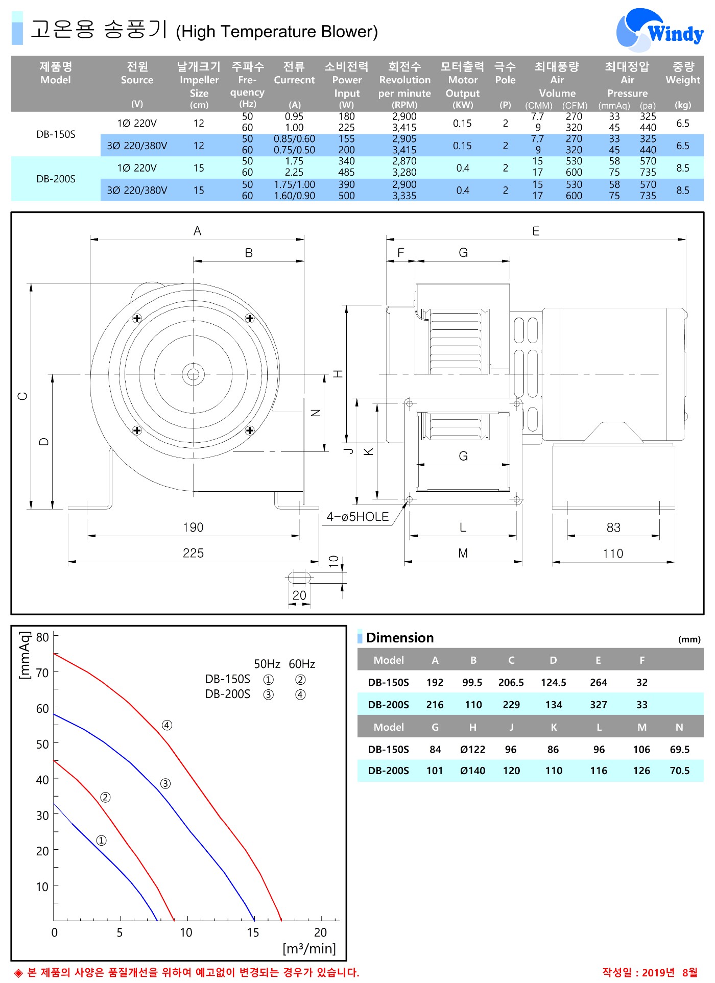 [만승전기] 고온용 송풍기 DB-150S DB-200S