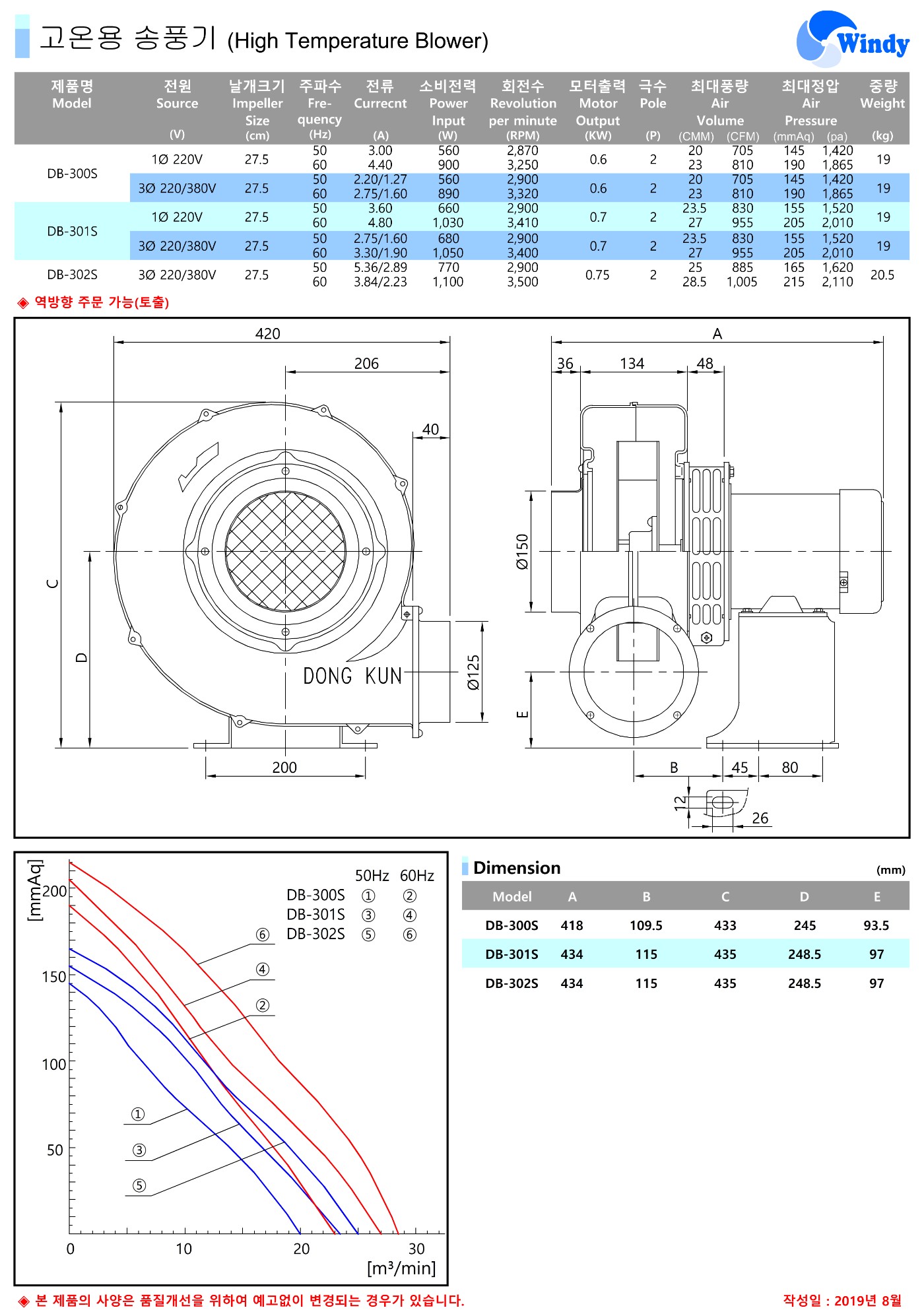 [동건공업] 고온용 송풍기 DB-300S DB-301S DB-302S