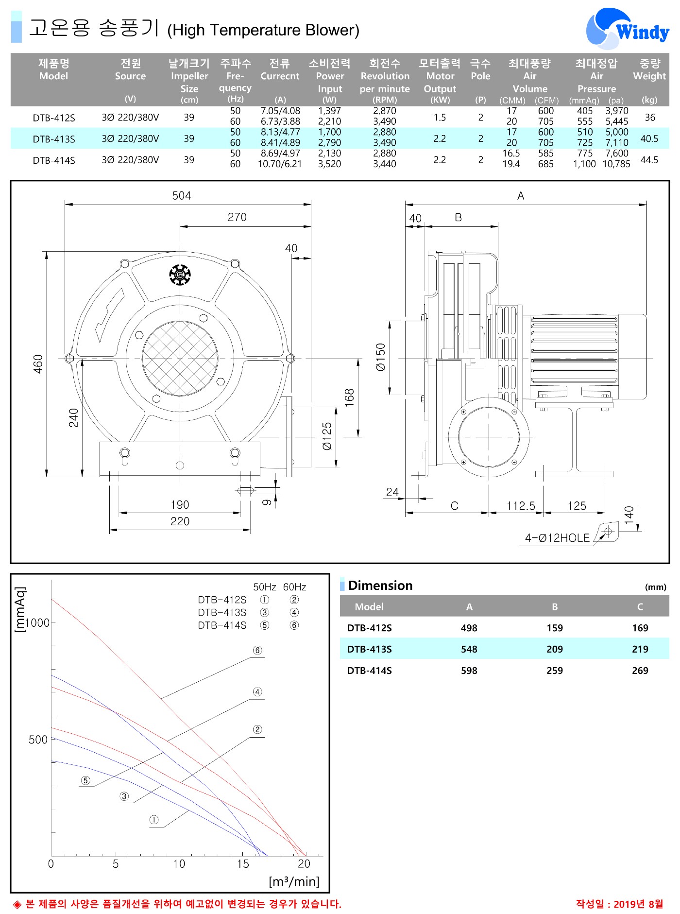 [만승전기] 고온용 송풍기 DTB-412S DTB-413S DTB-414S