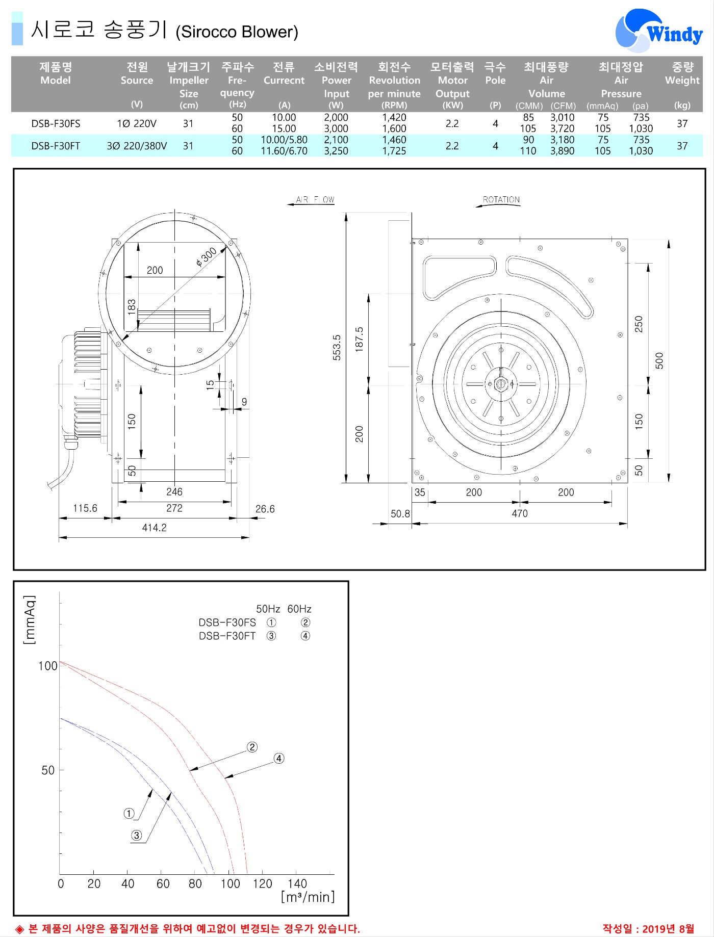 [동건공업] 시로코팬 DSB-F30FS DSB-F30FT