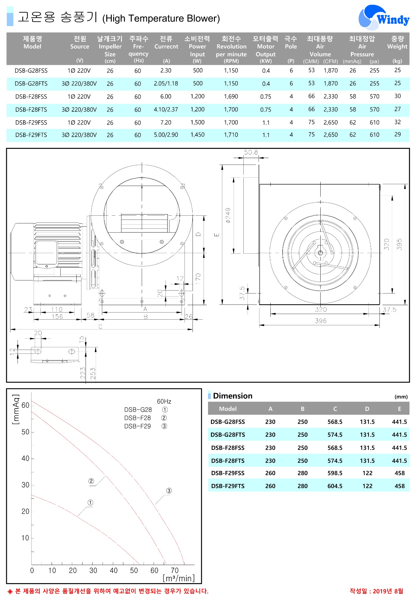 [동건공업] 고온용 시로코팬 DSB-G28FSS DSB-G28FTS DSB-F28FSS DSB-F28FTS DSB-F29FSS DSB-F29FTS