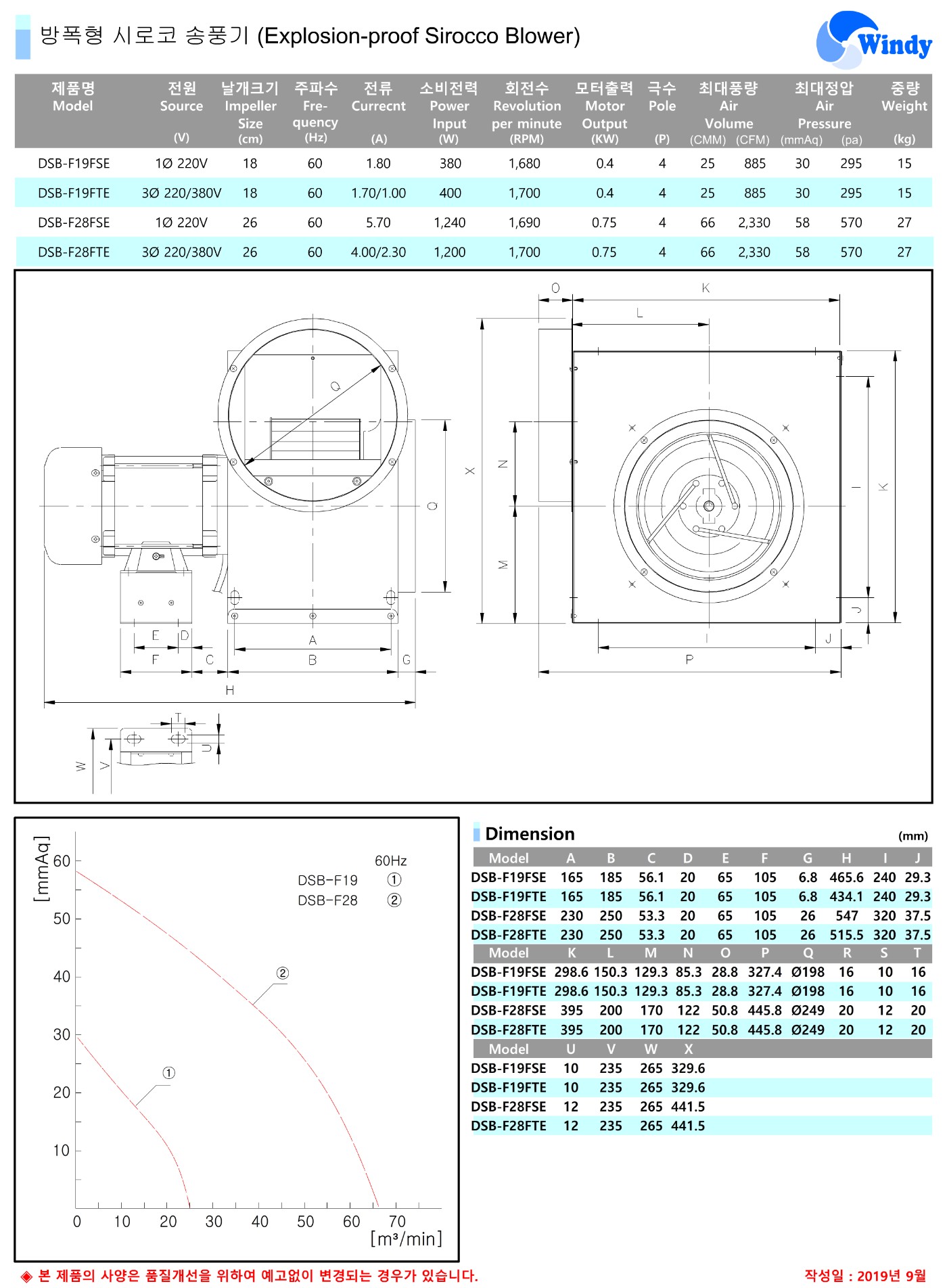 [동건공업] 방폭형 시로코팬 DSB-F19FSE DSB-F19FTE DSB-F28FSE DSB-F28FTE