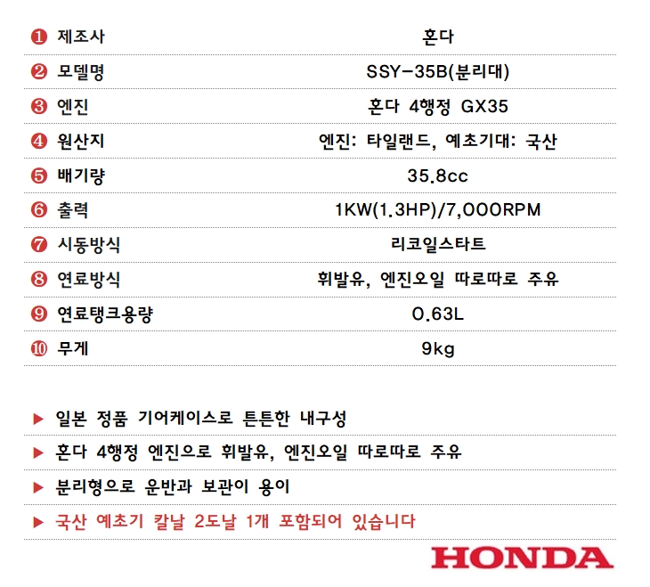 [혼다] 4행정 예초기 SSY-35B