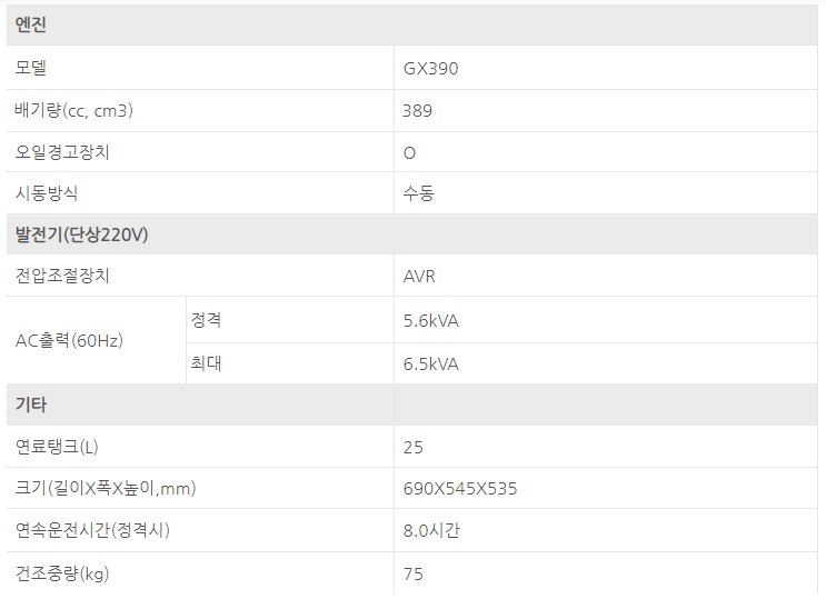 [제넥스] 가솔린 혼다엔진 발전기 SG6500DX
