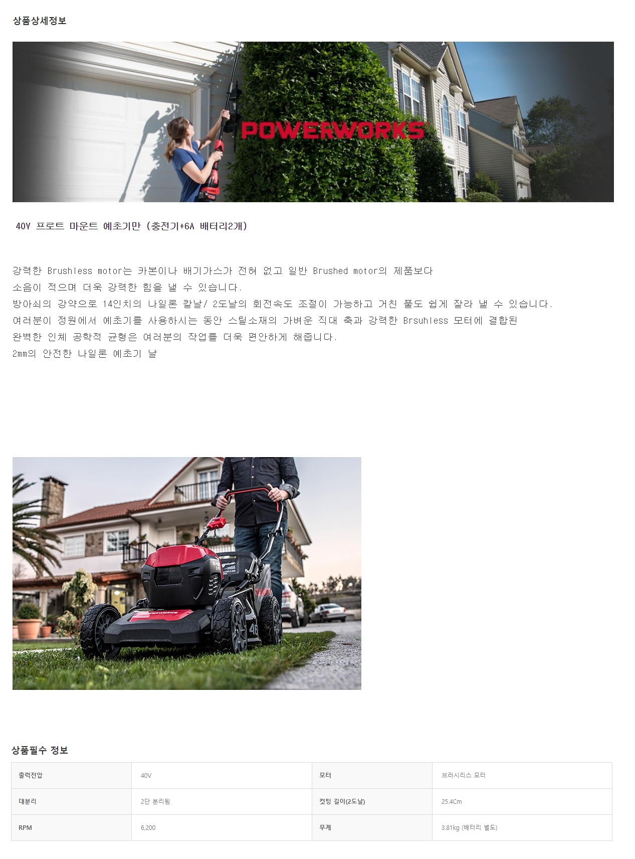 [파워웍스] 충전식 프론트 마운트 예초기 40V 배터리 5Ah 2개 + 충전기