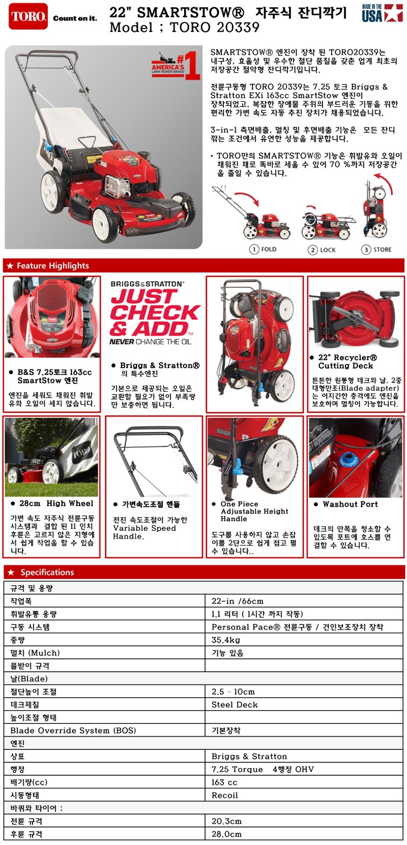 [토로] 제초기 잔디깍기 TORO 20339 Smart-Stow