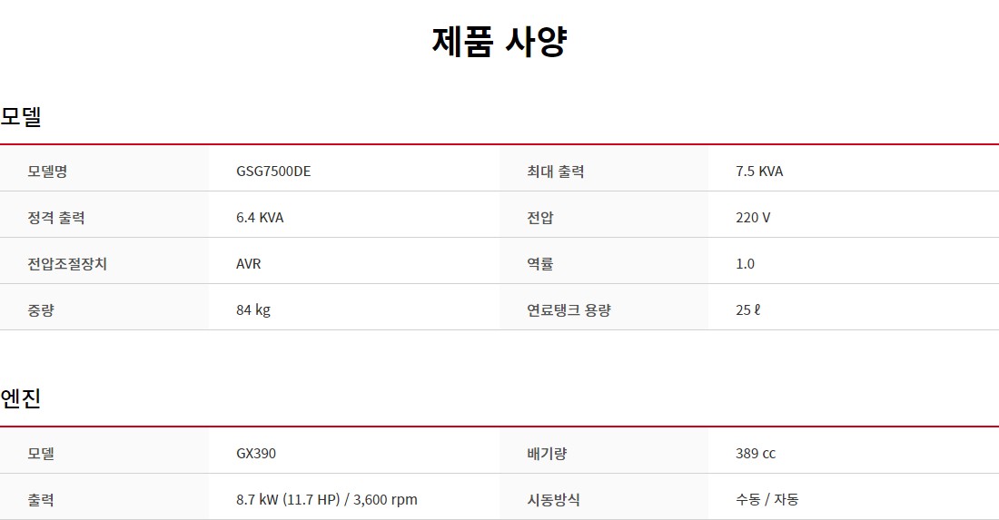 [마와루] 가솔린 혼다엔진 발전기 GSG7500DE