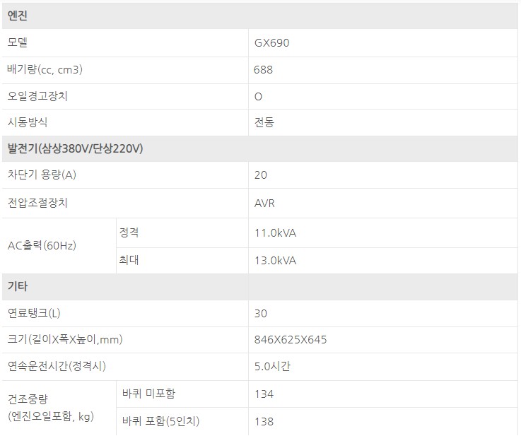 [제넥스] 가솔린 혼다엔진 발전기 SGT13000EX