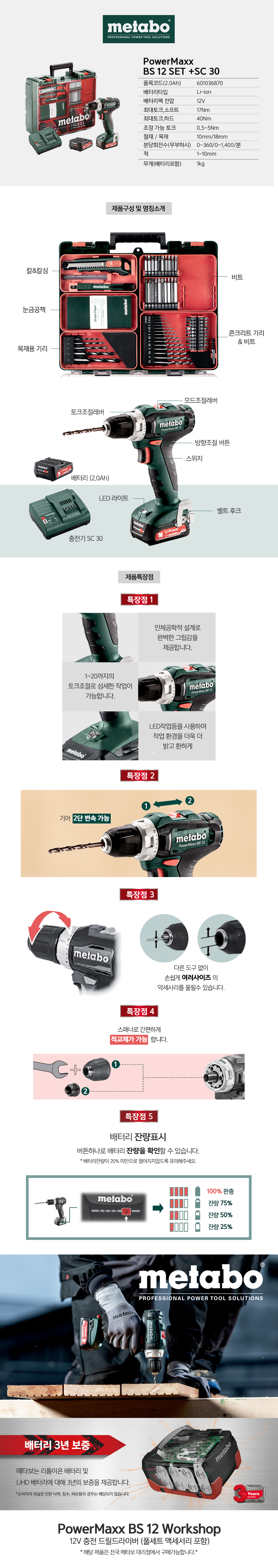 [메타보] PowerMaxx BS 12 Workshop 12V 충전 Workshop 드릴 드라이버(풀세트)