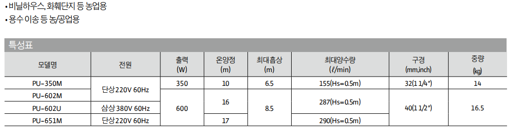 [윌로] 농공업용펌프 PU-651M