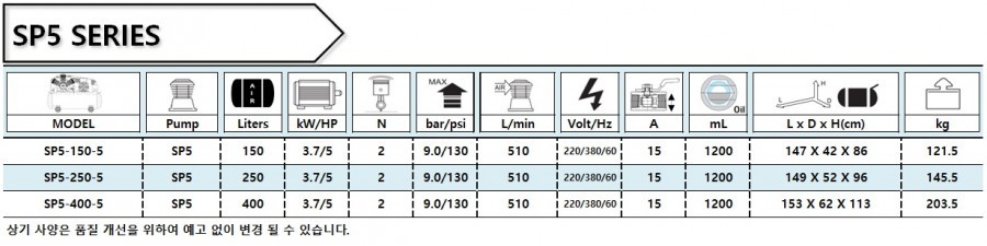 [서원콤프레샤] SP5-150-5 산업용 (5마력 150리터)