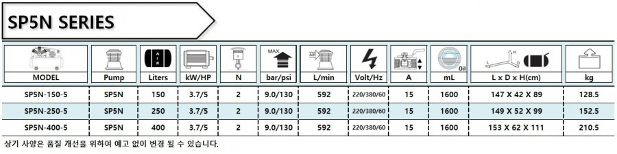 [서원콤프레샤] SP5N-400-5 산업용 (5마력 400리터)
