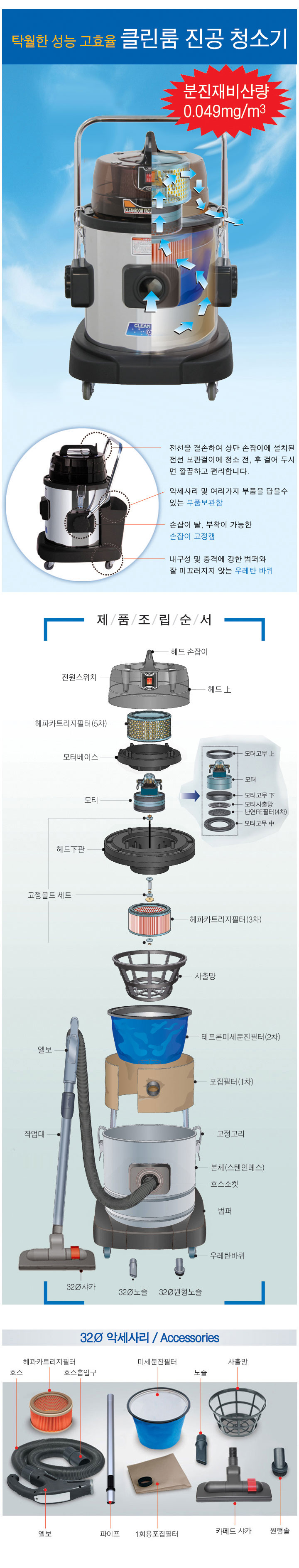 [씨에스테크] 기능성 크린룸 청소기 CS-140SCR