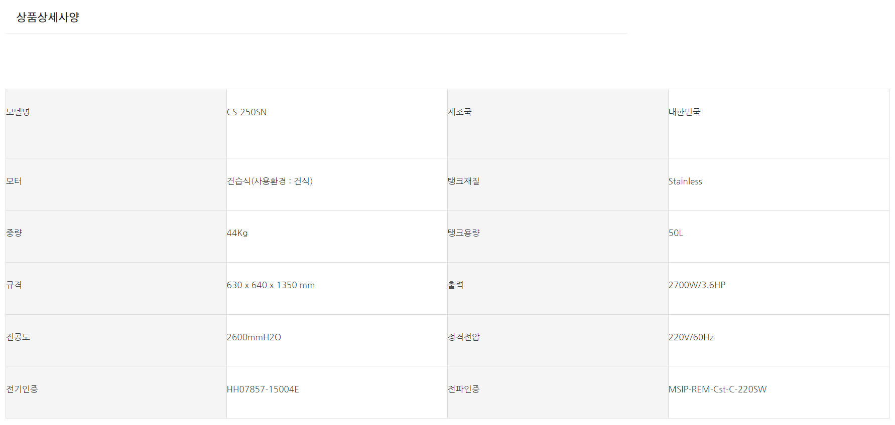 [씨에스테크] 산업용 청소기 CS-250SN