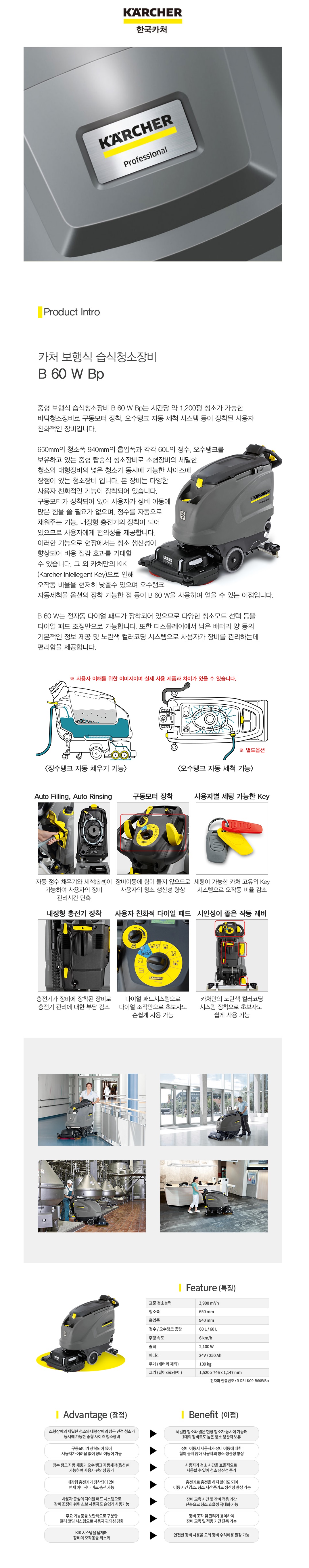 [카처] 보행식 습식 청소장비 B 60 W Bp