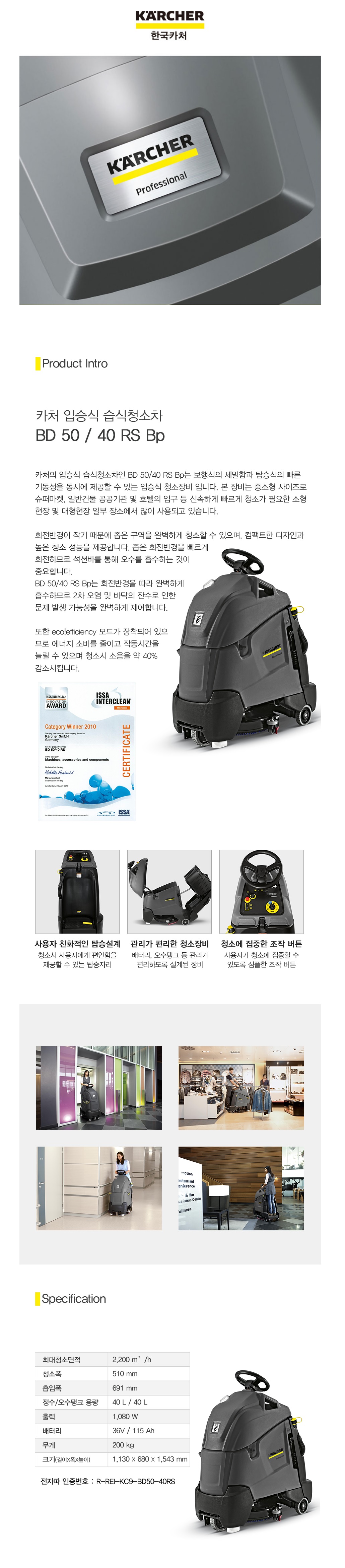 [카처] 입승식 습식 청소차 BD 50/40 RS Bp