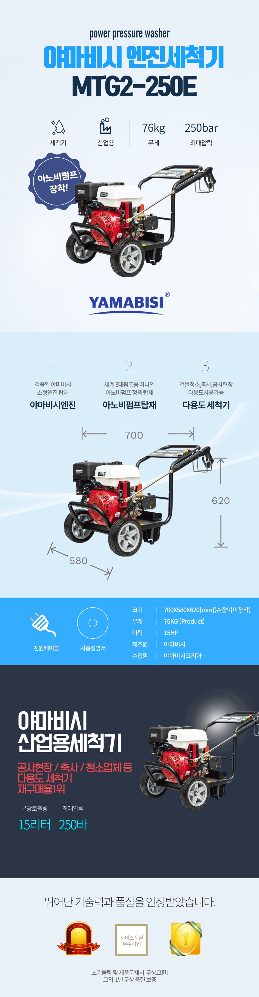 [야마비시] 고압세척기 MTG2-250E